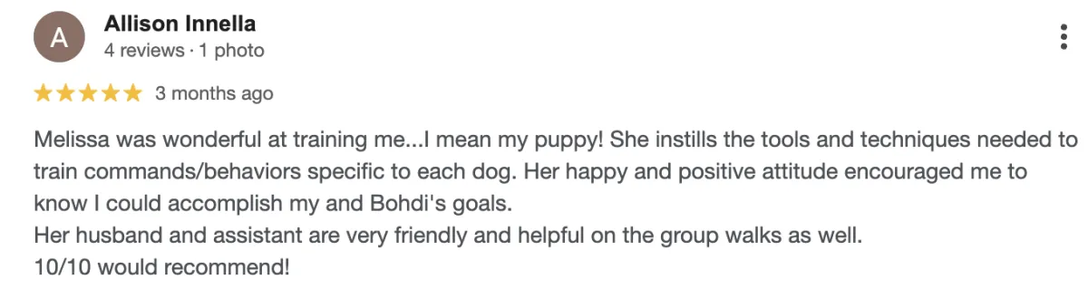 đž Next-Step Training Recommendations If weâre the right fit, youâll know exactly what comes next to turn your dog into the well-behaved pet youâve always wanted.